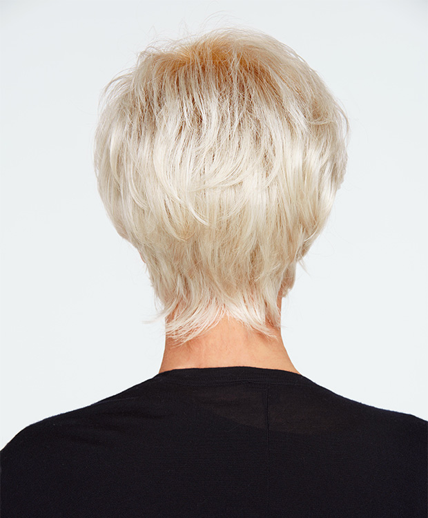 A short look that’s long on style, this slightly waved, textured cut is punctuated with layered lengths throughout for natural movement and maximum styling options. Soft tendrils around the face and crown can be styled onto the face or brushed away. Longer, shattered pieces at the extended nape add softness and finesse. The Sheer Indulgence™ monofilament crown provides a natural contour. This is a heat styleable synthetic wig.