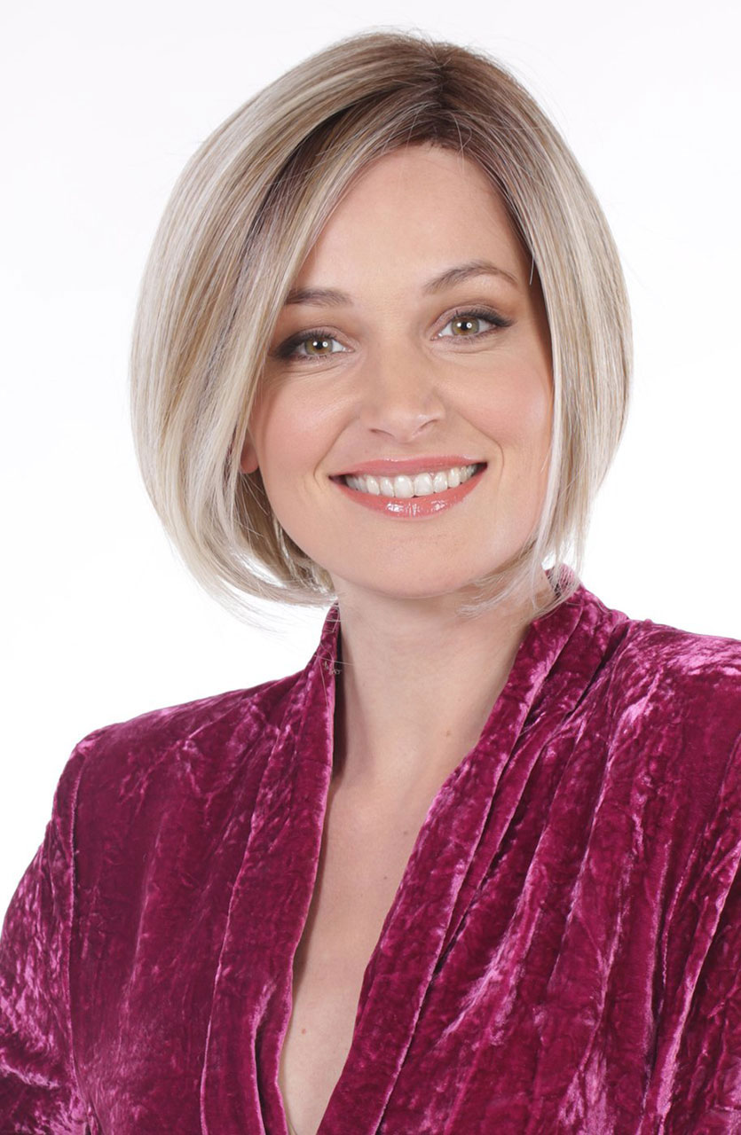 The latest and modern version of the timeless bob. Premium lace front liberates us from hiding behind the bang although you always have an option to cut. Partial monofilament top creates the perfect fitting crown with the natural-looking part and without being overly flat. Precise layer cut around the face and wispy ends deliver its own simple elegance with versatility. This is a heat styleable human & synthetic hair mix.